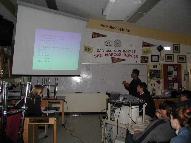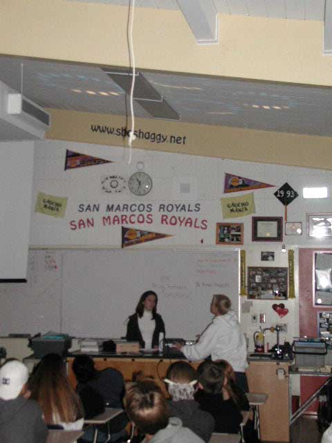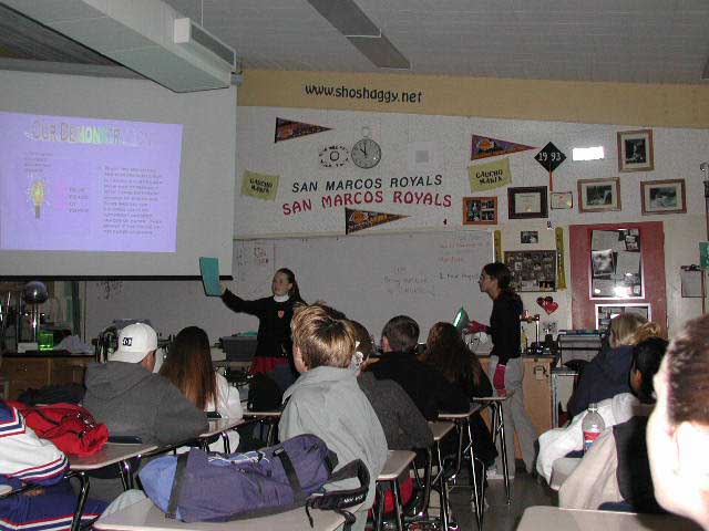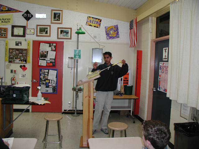 Armando and Hugo present their project on Conservation of Energy and Work. Seen at left is their sign language interpreter, Dixie.