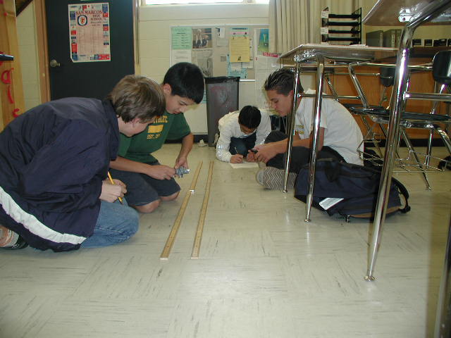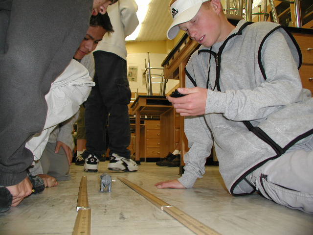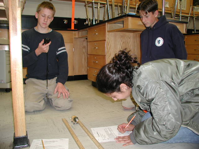 Becca records distances while Nick operates the stopwatch and George calls out distances.