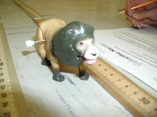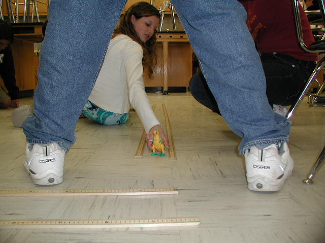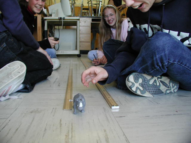 This Rhino is encouraged to finish the race by Krista who records the distances while her teammates perform other tasks. |